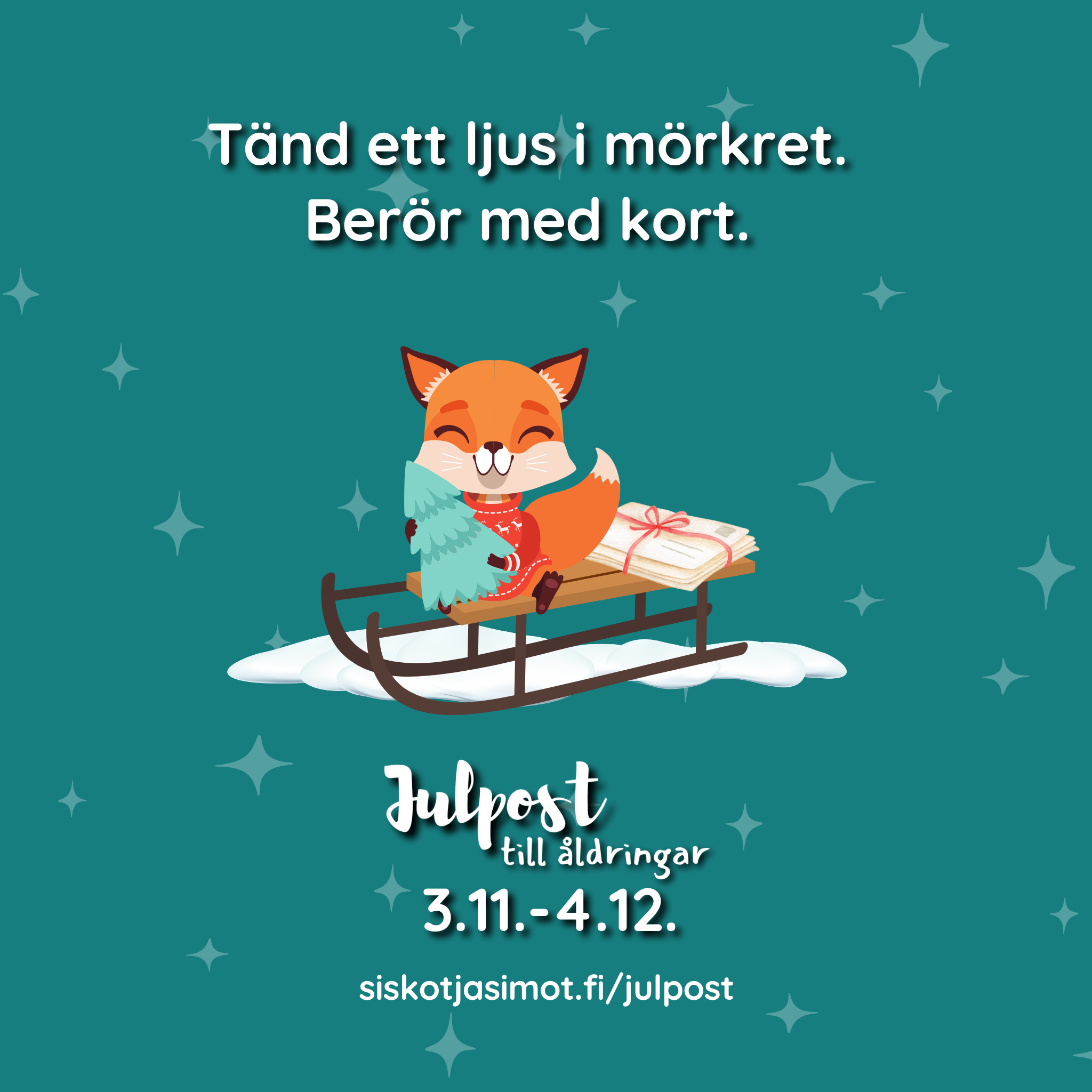 Siskot ja Simot, samfundet för kreativ omsorg, arrangerar redan för trettonde gången kampanjen Julpost till åldringar under tiden 3.11.–4.12.2025 och samlar julkort till åldringar inom hemvård och serviceboende.
