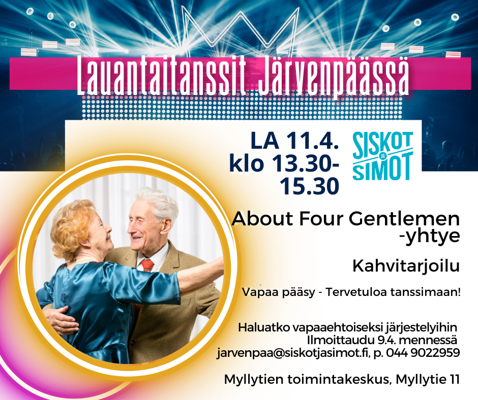 ![]() | TAMPERE: Karaoketanssit Pispanlinnan palvelukeskuksessa MILLOIN: 16.4.2026 13:00 – 14:00 Lue lisää ja ilmoittaudu |