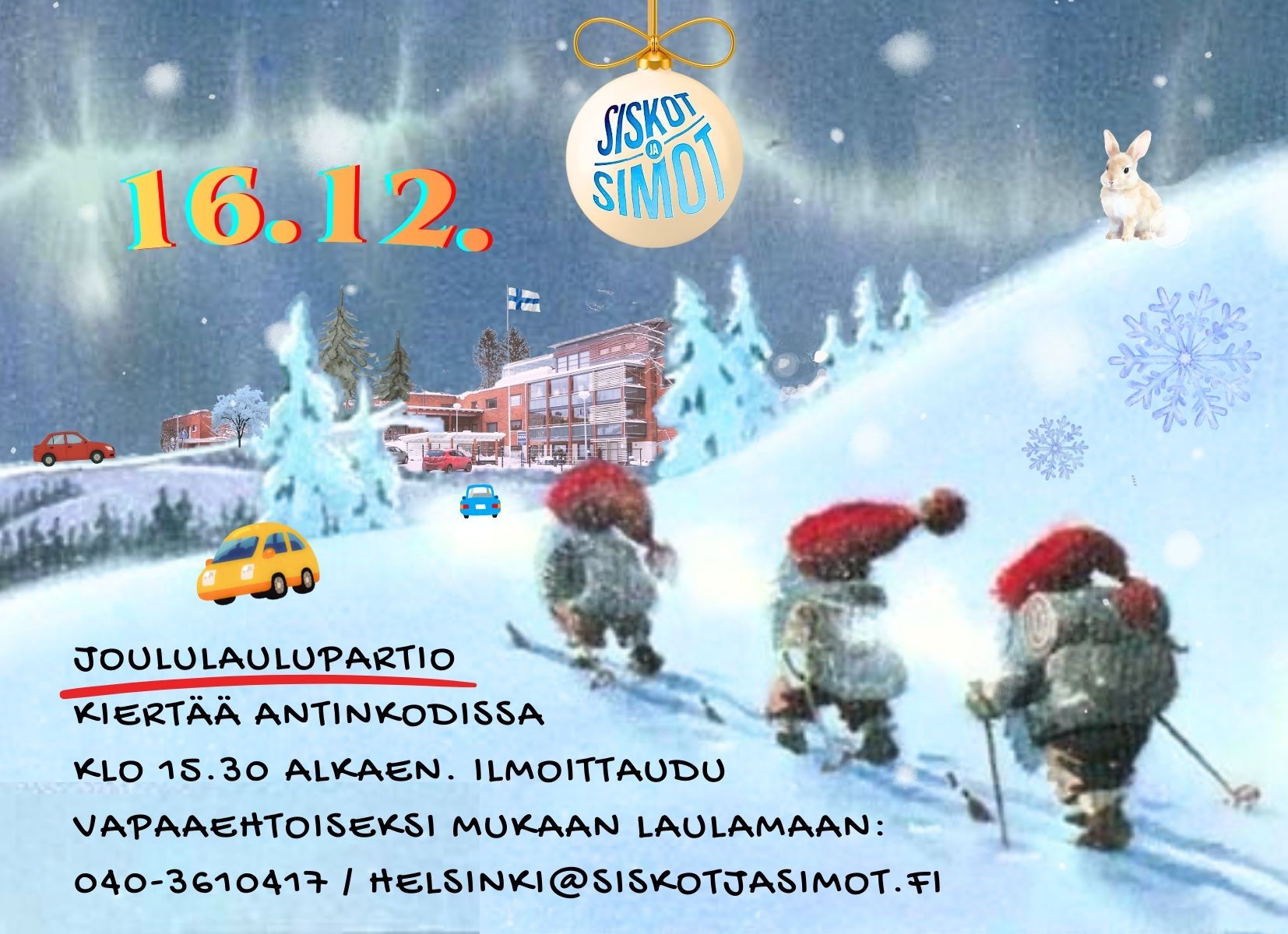 MITÄ: Kierrämme Antinkodin ryhmäkodeissa laulamassa asukkaille joululauluja. Laulutaito ei pakollinen, tonttulakki suotava.