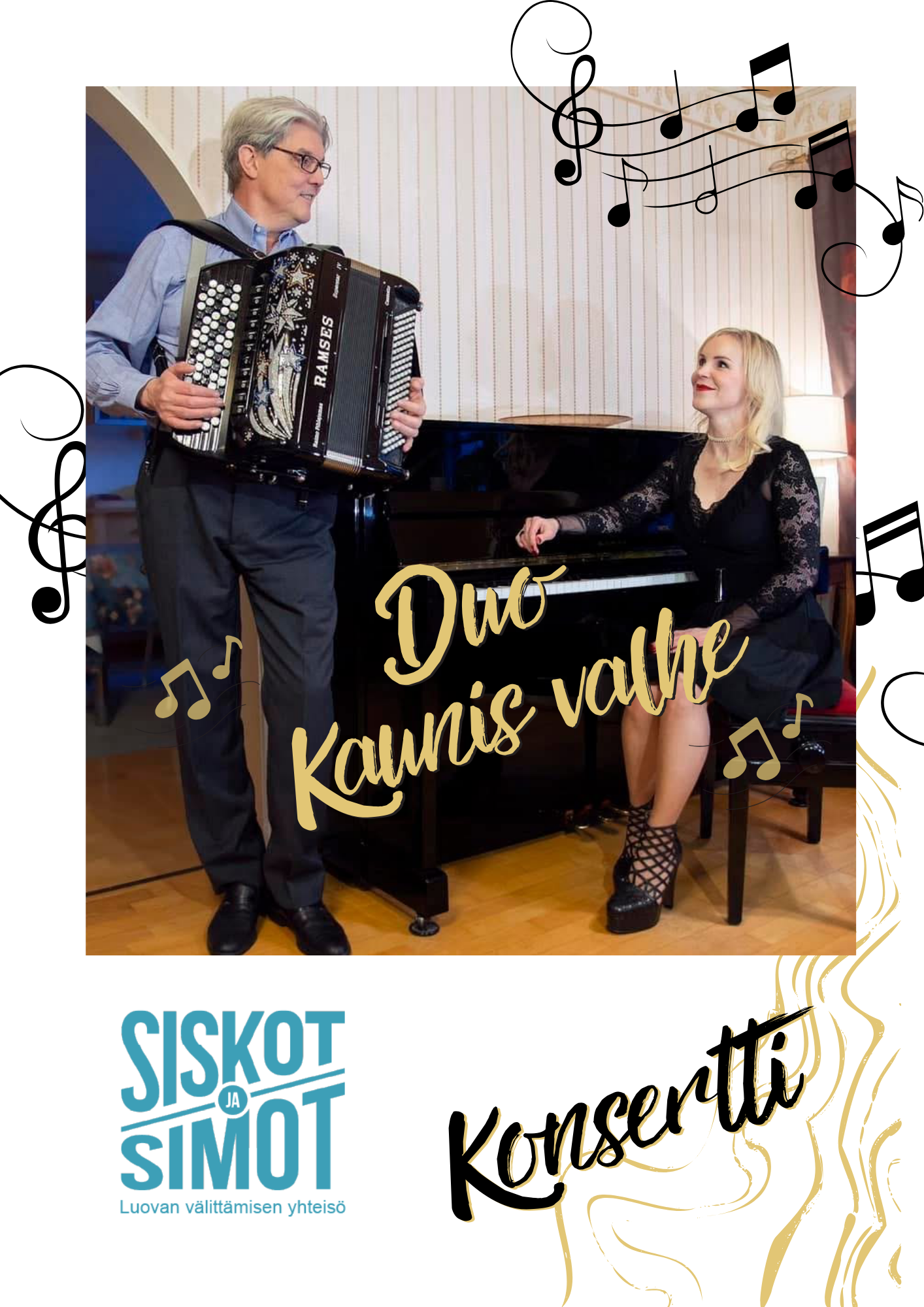 Tule vapaaehtoiseksi mukaan auttamaan Hoivakoti Myllyn asukkaita liikkumisessa ja seuraksi kuuntelemaan Duo Kaunis Valheen konserttia. Vietetään yhdessä mukavia hetkiä kuunnellen musiikkiesitystä ja seurustellaan.